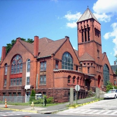 The Methodist Episcopal Church (Derby UMC) was the first church built around Derby Green in 1837, sitting at the north end along Fifth Street. It was not the first church in Derby, but it was the first church built in the Borough of Birmingham, which is what the current downtown area of Derby was called after previously being referred to as Smithville. The church was eventually replaced by the current edifice, which stands on the corner of Fifth and Elizabeth, but the main entrance is still on Fifth Street.